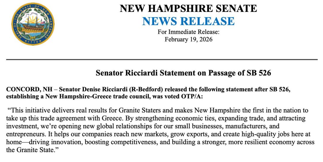 Thank you to Efstathia Booras, Greek Consulate General Symeon Tegos, Dick Anagnost, Chris Chrisafides, the NH Senate Commerce Committee, the and all others involved!